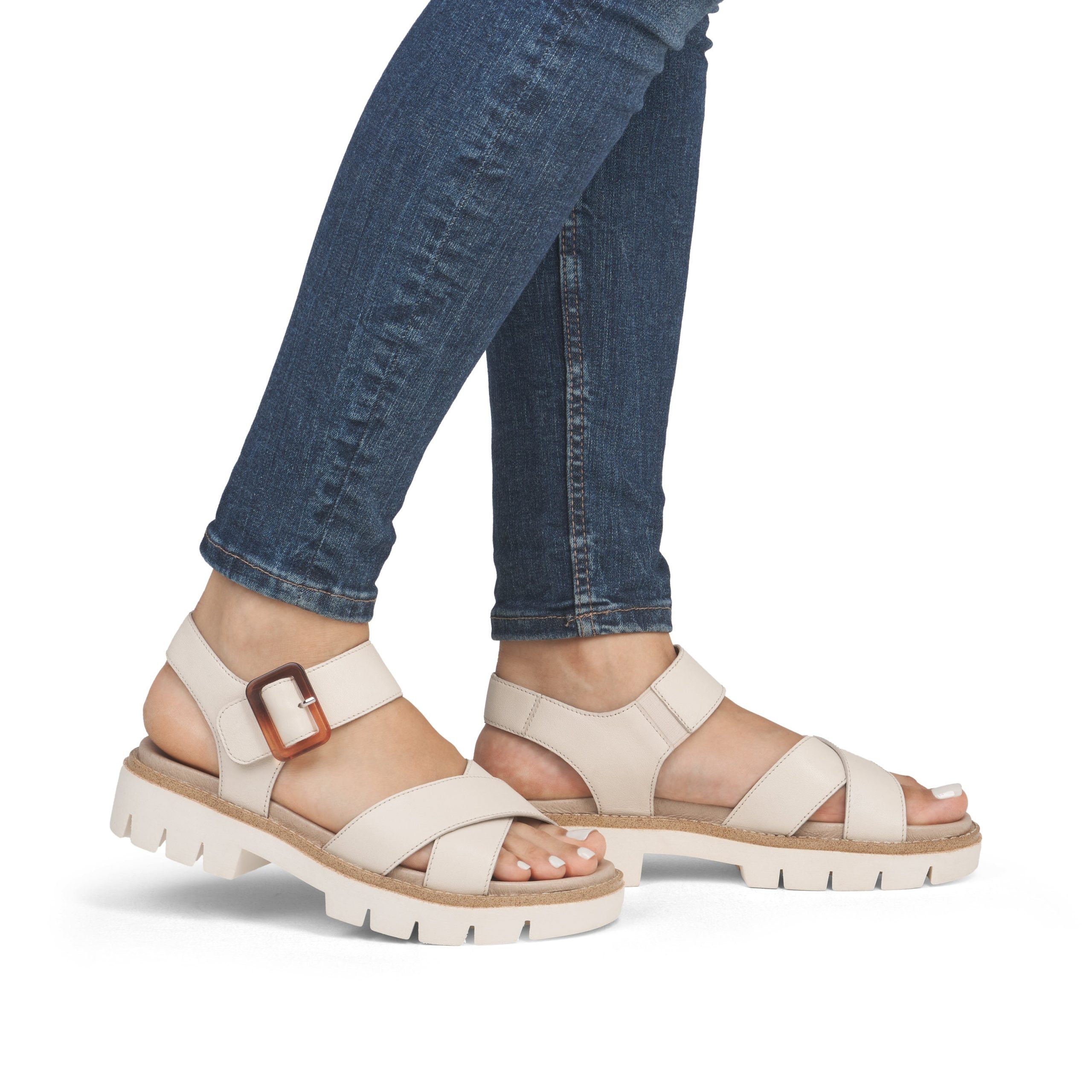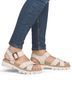 Rieker Beige Hook & Loop Sandals For Women | Remonte D7950-60 | Women’s Spring/summer
